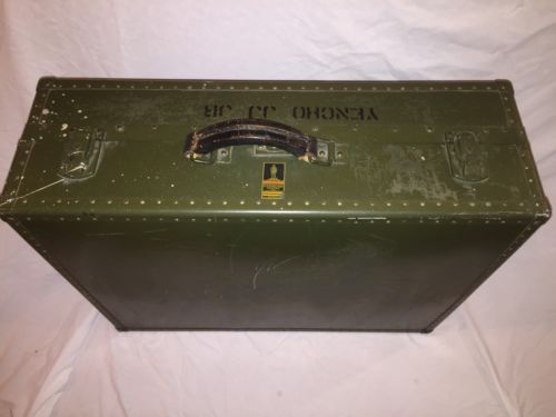 Title (ebay affiliate link): Vintage Military luggage/footlocker trunk WWI WWII? Hard case great condition!