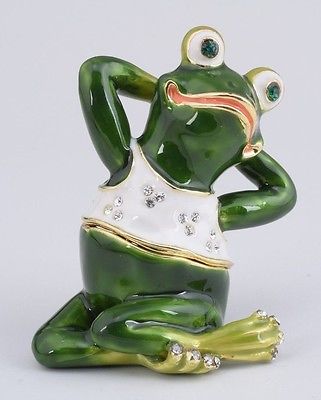 Frog in yoga Trinket box by Keren Kopal Austrian Crystal Jewelry box Faberge