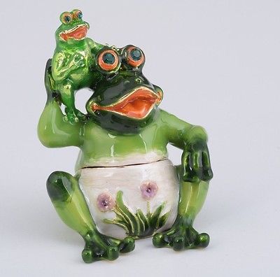 Title (ebay affiliate link): Frog trinket box by Keren Kopal Austrian Crystal Jewelry box Faberge