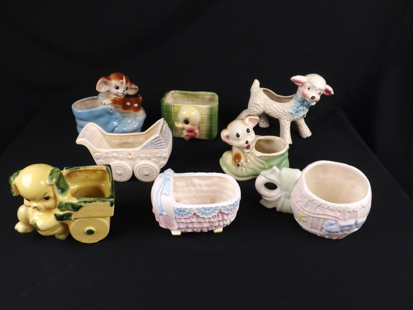 Vintage Baby Planter Lot of 8 Dog Lamb Carriage Shoe Porcelain Gift Collect