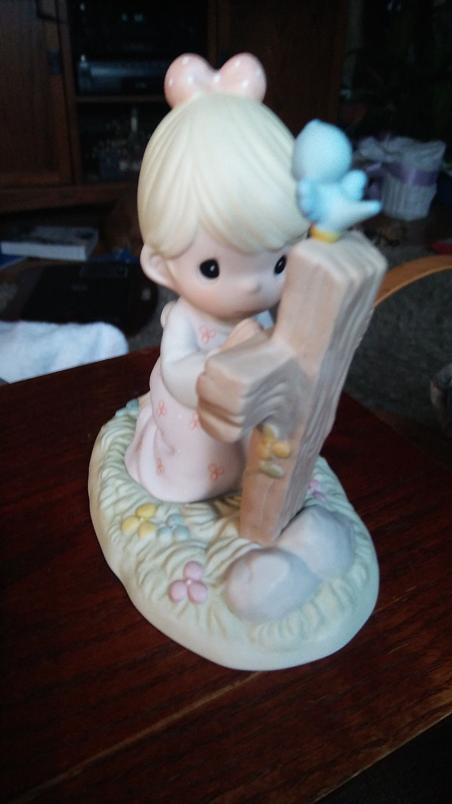 Title (ebay affiliate link): Enesco Precious Moments "Alleluiah, He is Risen" 5" Girl Kneeling at Cross-Mint