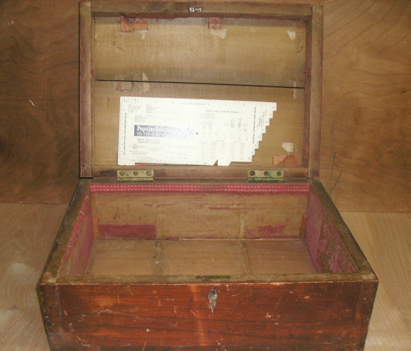 Title (ebay affiliate link): Antique Primitive Handmade Science Wooden Lidded Storage Box~Rustic Shabby!