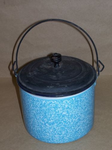 Title (ebay affiliate link): Antique Primitive Blue Enamel Spotted Cole Miners Lunch Bucket School Lunch Pail
