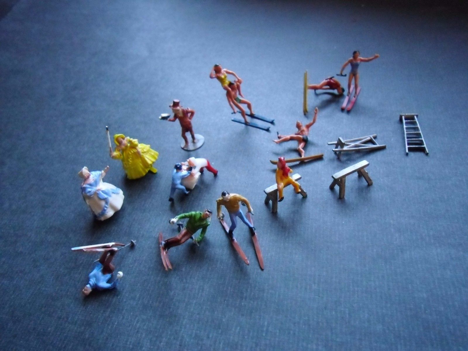 Title (ebay affiliate link): Mixed Vintage MINIATURE PLASTIKEN People Skiing / Water Skiing Super Small Craft