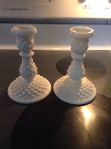 Title (ebay affiliate link): Fenton Candlesticks Milk Glass Hobnail Tall -- Set 2 White Vintage Glass
