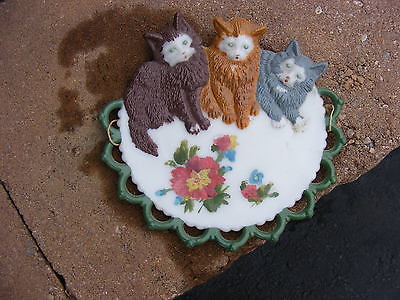 RARE OPAQUE MILK GLASS 3 CATS PLAQUE/PICTURE VICTORIAN WHITE MILKGLASS OLD 1890
