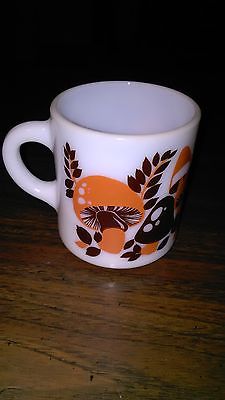 Title (ebay affiliate link): Hazel Atlas Milk Glass Mug Mushrooms Brown and Orange Vintage