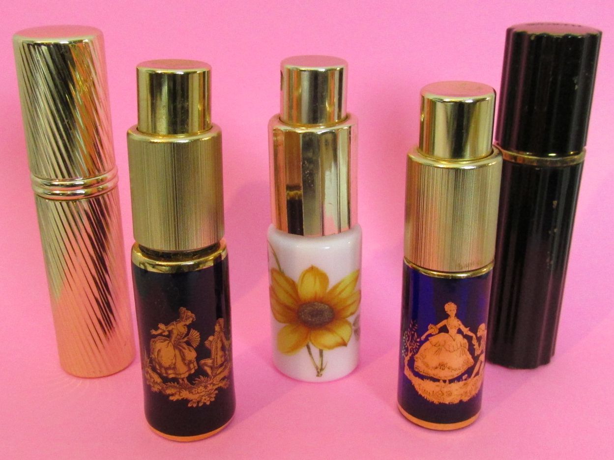 VINTAGE PURSE SIZE PERFUME ATOMIZER LOT LIMOGES FRANCE COBALT MILK GLASS WORTH