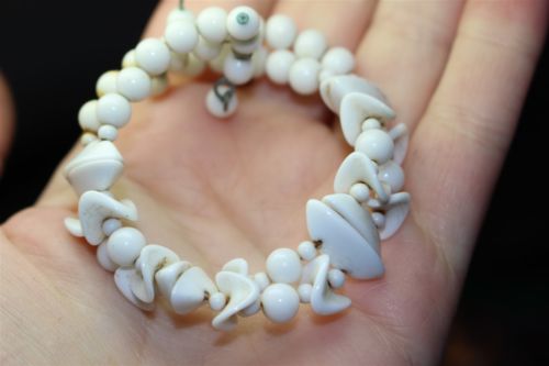 Vintage in Seattle Auction Lot#264 very old white milk glass beads cuff bracelet