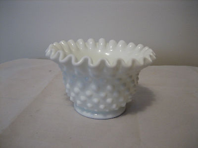 Title (ebay affiliate link): Vintage Fenton White Milk Glass Hobnail Ruffled Top Bowl 1950`s