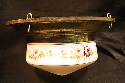 Vtg Victorian Hand Painted Milk Glass Pan Light Brass Chandelier Ceiling Fixture