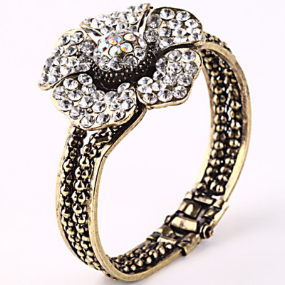 Gorgeous Antique Crystal Flower Bangle Bracelet E0686-2