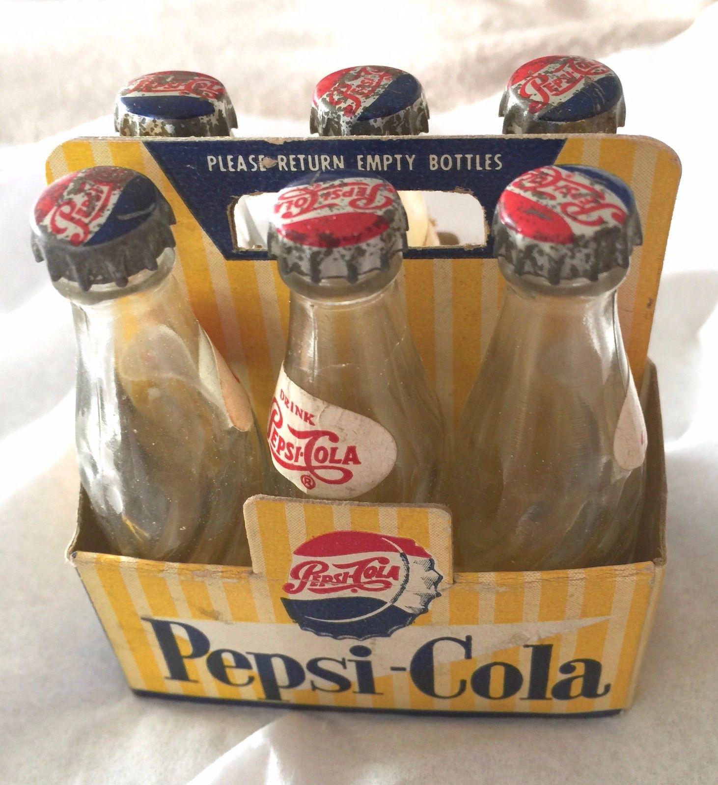 Title (ebay affiliate link): vintage miniature glass Pepsi bottles Kerry Mfg doll size toy kitchen mini shelf