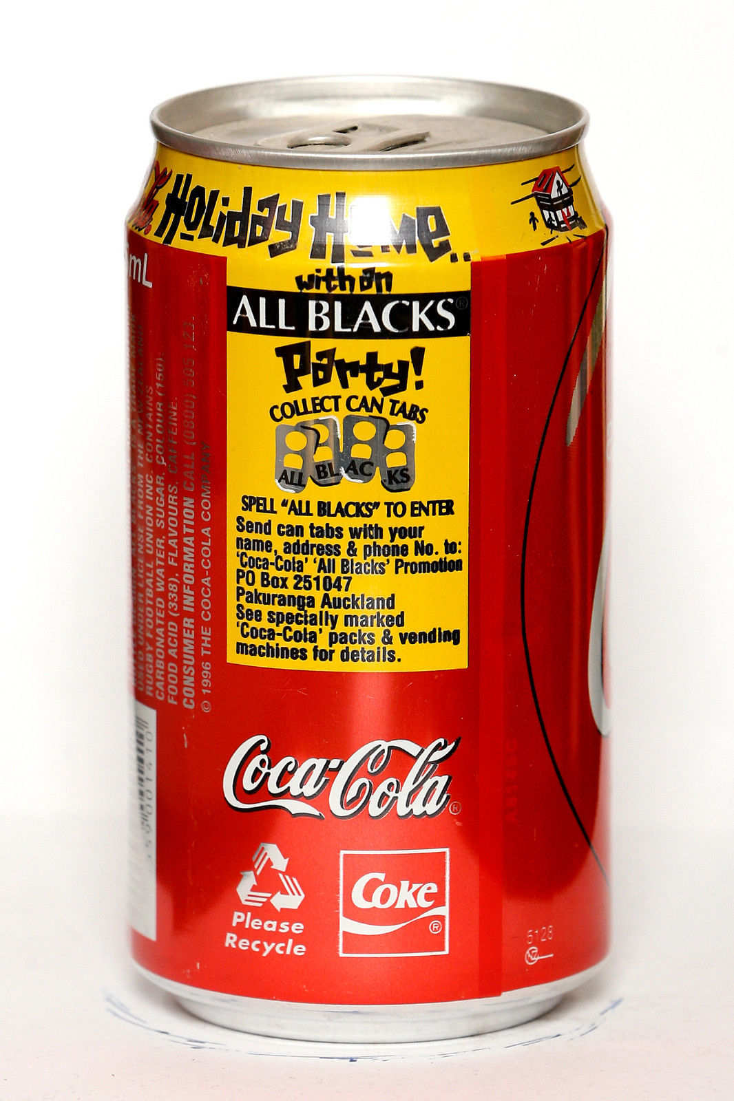Title (ebay affiliate link): 1990''s Coca Cola can from New Zealand, All Blacks Party