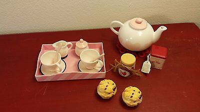 Miniature Plastic Toy Tea Set, White with Pink Hearts and Black Trim