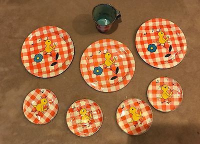 1939-40 Ohio Art Tin Litho Child Doll Dishes "Humpty-Dumpty/Birdie 8 Pieces