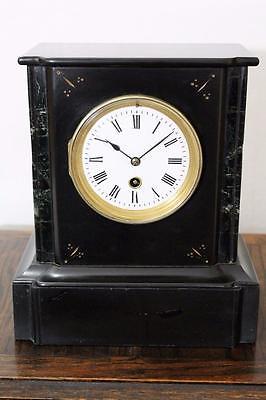 ANTIQUE FRENCH BLACK SLATE & MARBLE MANTLE CLOCK 1880 MATCHING SERIAL NUMBERS