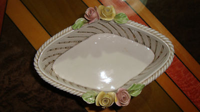 ANTIQUE CAPODIMONTE CANDY TRINKET DISH LATICE WEAVE