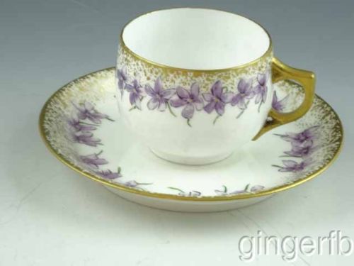 Antique Hand Painted Limoges Cup and Saucer AK With Violets