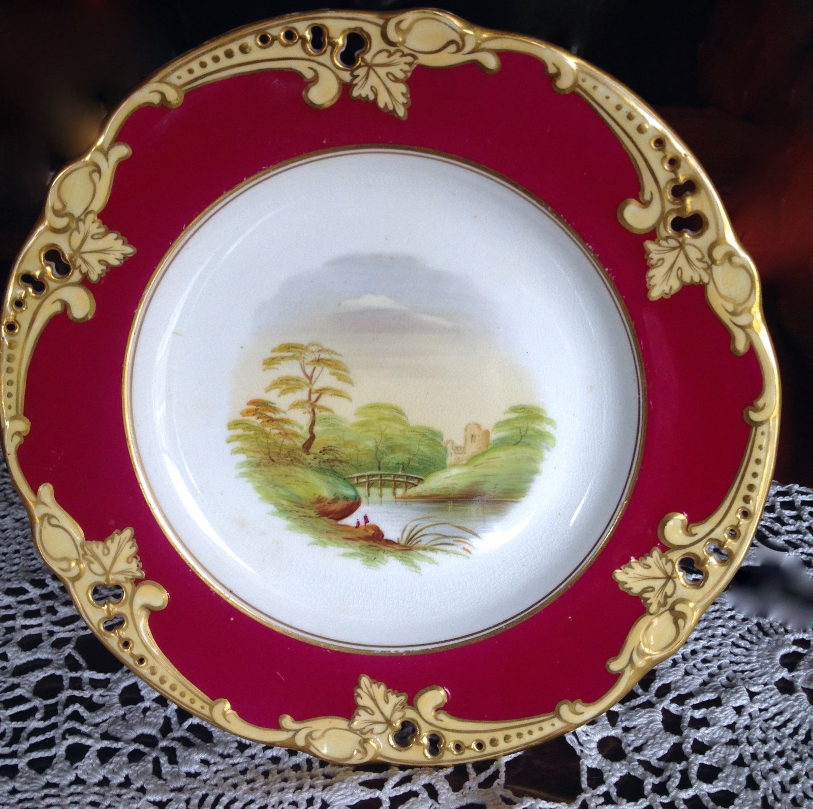 ANTIQUE JAPANESE DECORATIVE HAND PAINTED PLATE WATER SCENE UNMARKED 8-3/4 INCH