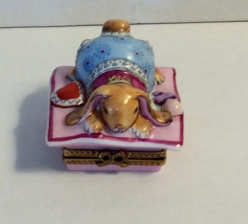 France Limoges Handpainted Rochard Relaxing Bunny Rabbit Valentines Trinket Box