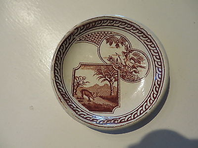 Brown Transfer Victorian 3 1/4" Butter Pat Eastlake Deer Bird WARWICK England