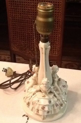 Vintage Porcelain Boudoir Lamp Made Germany Three Ladies
