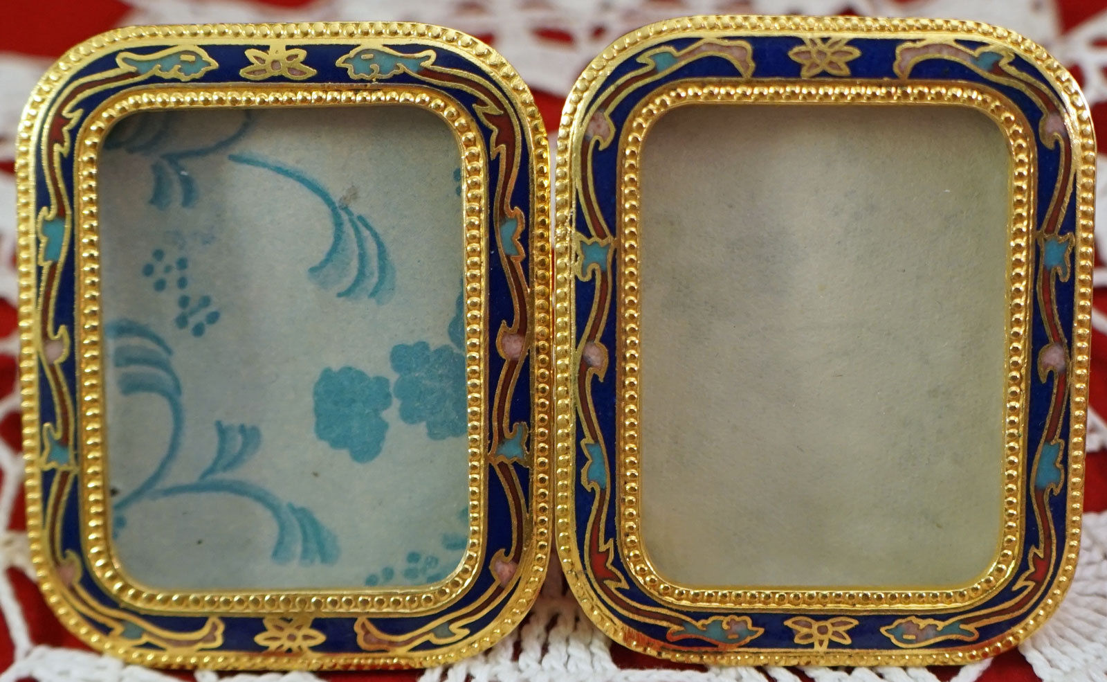 Pair of Miniature Picture Frames Brass & Cloisonne Purchased in Singapore