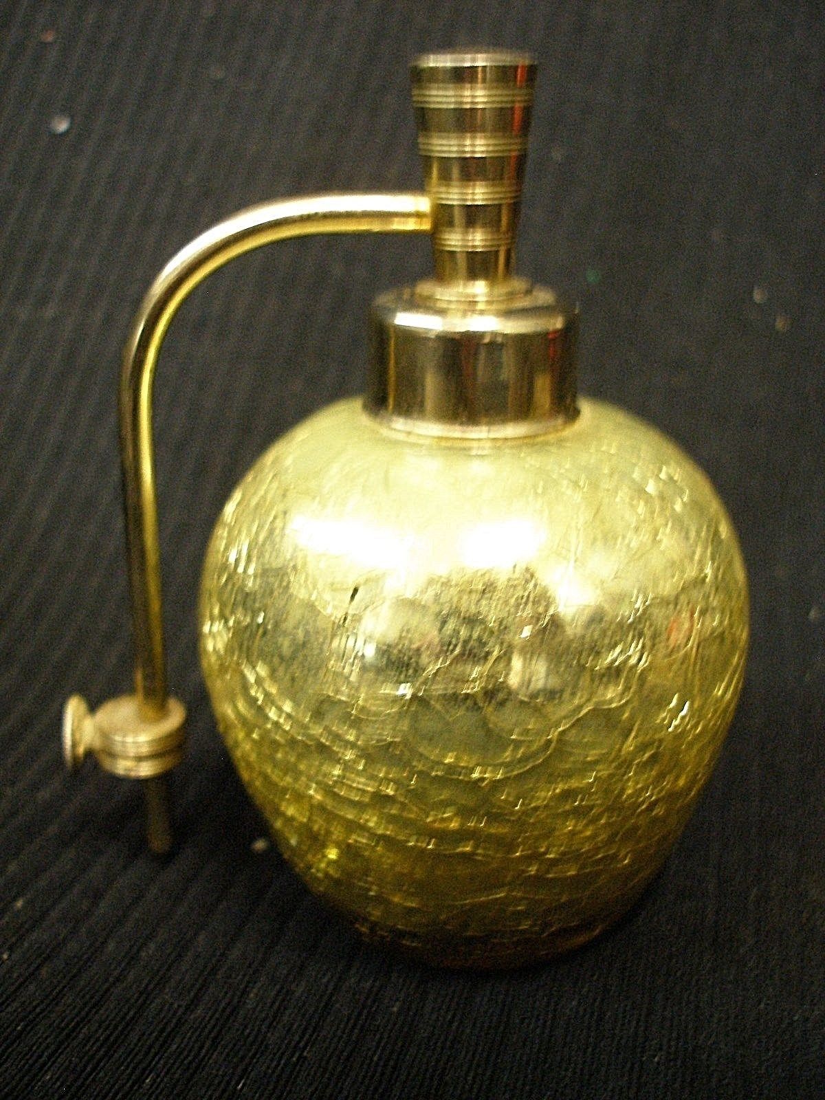 Title (ebay affiliate link): ANTIQUE DeVILBISS PERFUME BOTTLE GOLD CRACKLE MERCURY GLASS GOLD PLATE ART DECO