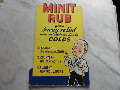 Vintage Minit Rub Advertising Sign Cold Medicine Store Display Die Cut Cardboard