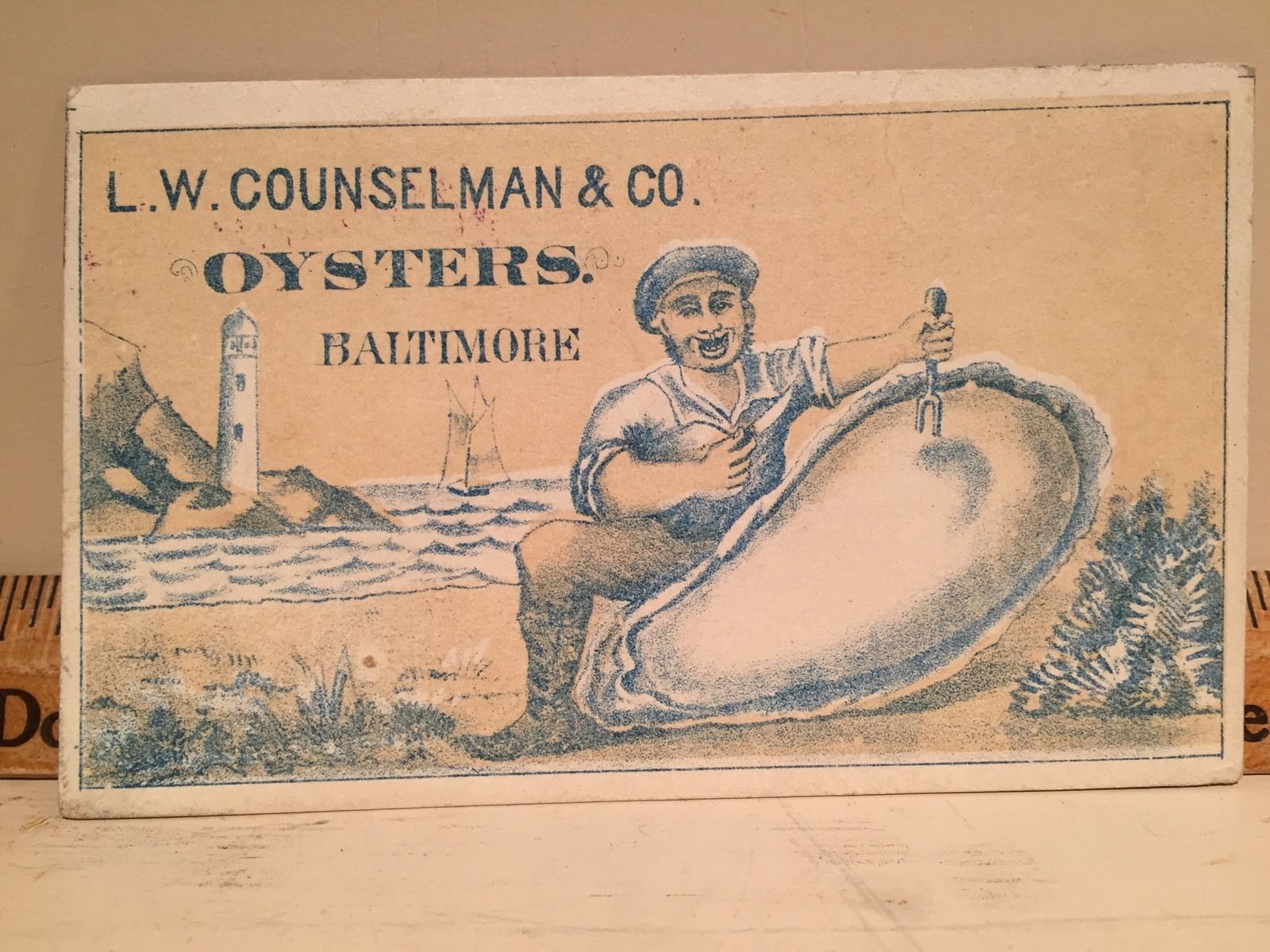 Title (ebay affiliate link): Rare 1880s Advertising Trade Card Huge Oyster Counselmans Baltimore Dansville NY