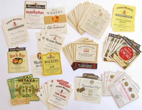 Title (ebay affiliate link): Lot Whiskey Liquor Bottle Labels Hiram Canadian Club Jameson Courvoisier Metaxa
