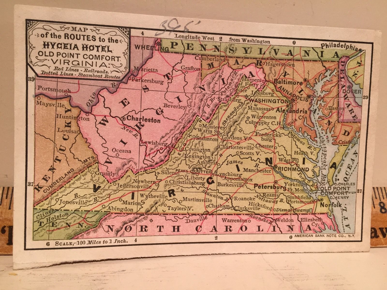 Title (ebay affiliate link): 1880 Advertising Trade Card Hygeia Hotel Old Port Comfort Virginia Old Road Map