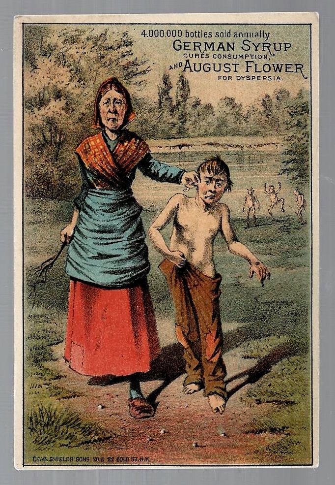Title (ebay affiliate link): Ocean Beach, NJ late 1800''s German Syrup & August Flower medicine trade card