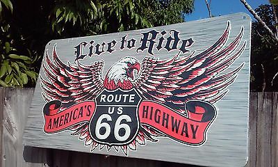 ROUTE 66 LIVE TO RIDE METAL SIGN RAISED LETTERS 17 BY 9 INCHES GAS AND OIL SHOP