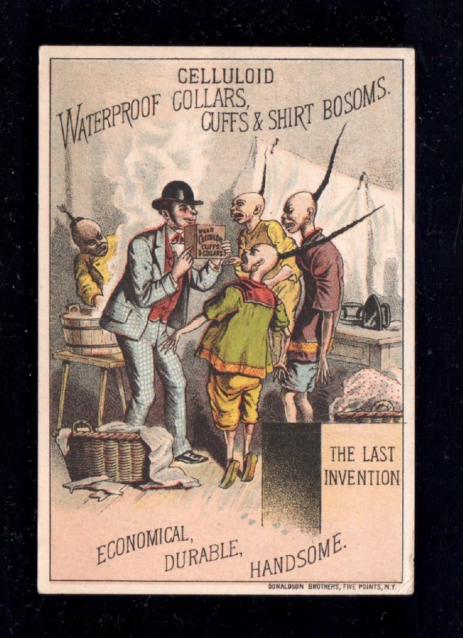 Title (ebay affiliate link): RARE 1870s FREEPORT IL ILLINOIS TRADE CARD - Chinese Ridicule - Celluloid Collar