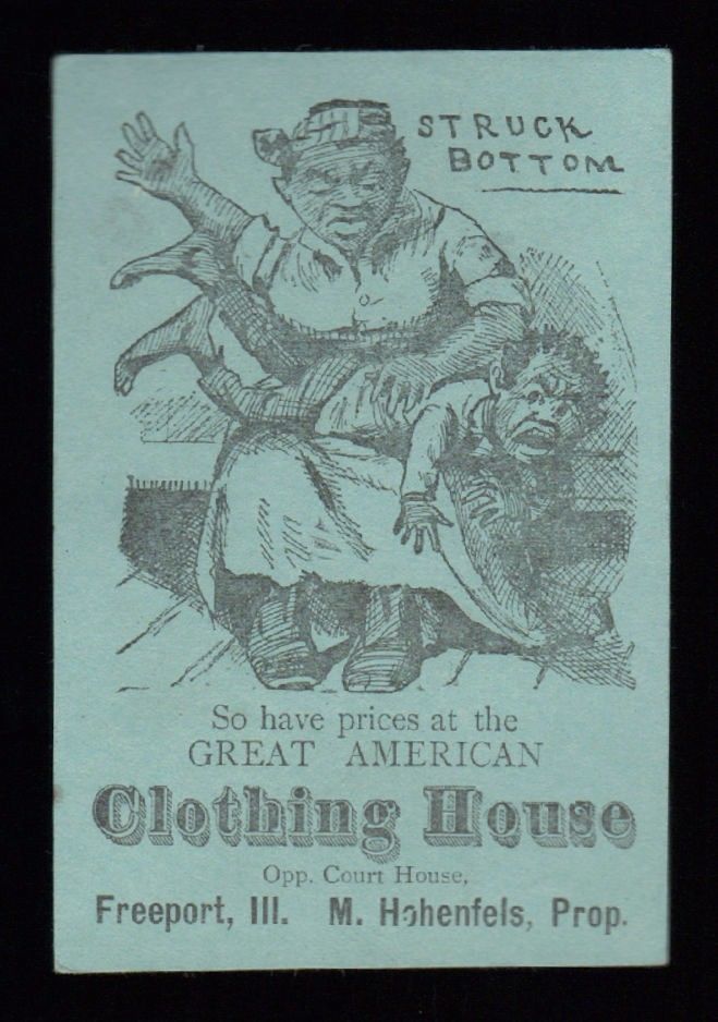 Title (ebay affiliate link): RARE 1870s FREEPORT IL ILLINOIS TRADE CARD - COMIC - Struck Bottom - Black Amer