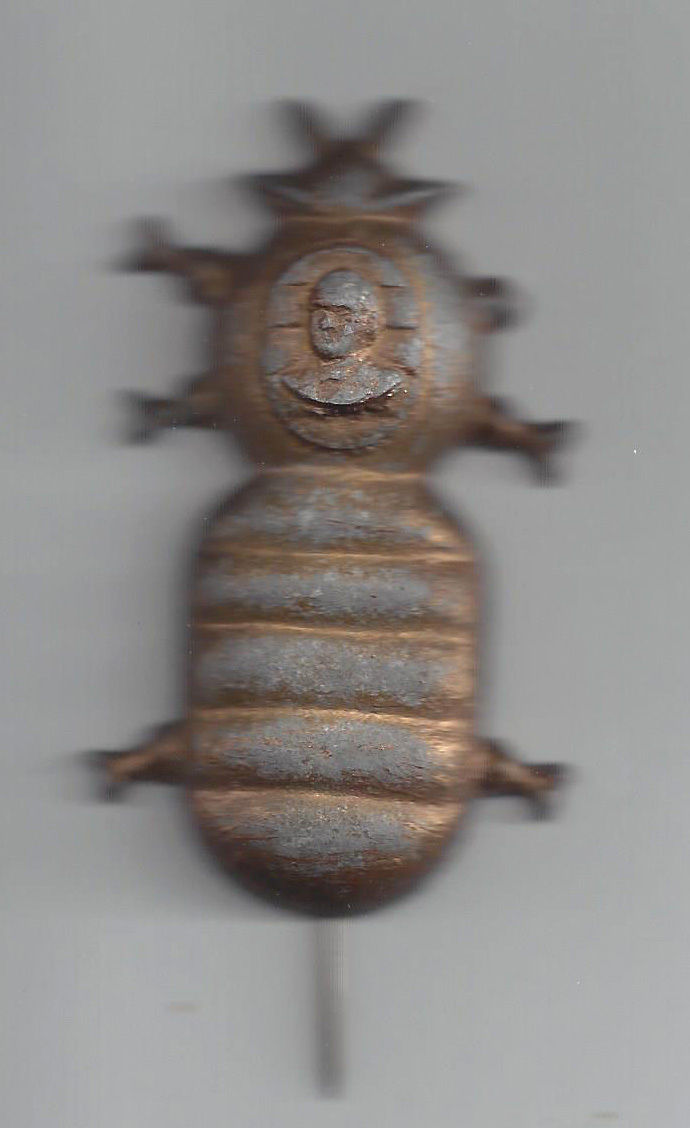 Title (ebay affiliate link): 1900 WILLIAM J. BRYAN FIGURAL SILVER BUG CAST IRON METAL CAMPAIGN BLANKET PIN