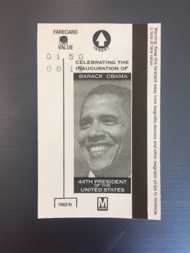 Title (ebay affiliate link): Barack Obama 44th Inaguration Commemorative Washington DC Metro Farecard