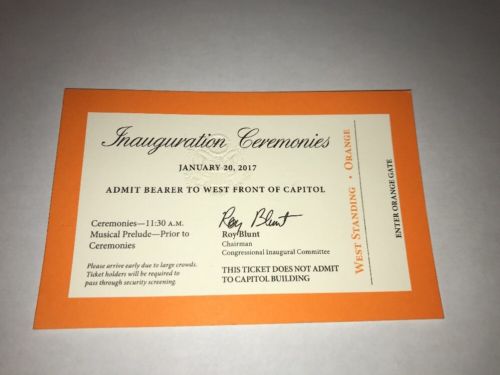 Title (ebay affiliate link): 2017 Inauguration Ceremonies ticket stub Donald Trump Orange.