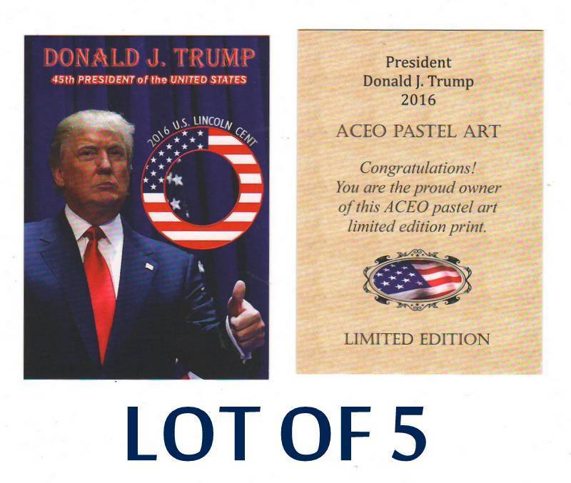 Title (ebay affiliate link): Lot of 5 DONALD TRUMP 2016 Presidential ACEO Pastel Art TEST Cards NEW