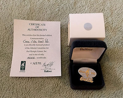 Title (ebay affiliate link): 1996 Atlanta Olympics Coca-Cola Balfour Oval Pin #4870 of 5000 with cert & box