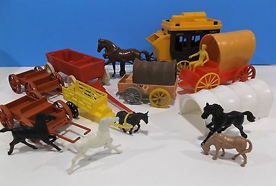 VINTAGE PLASTIC WAGONS, COVERED WAGON STAGE COACH part & pieces