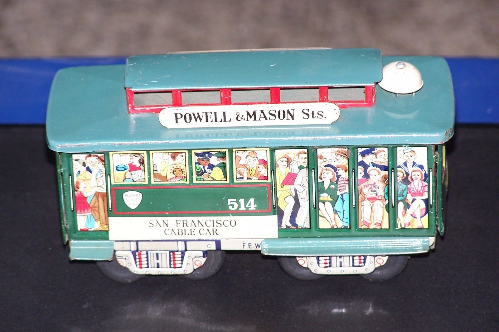 Vintage Tin Litho Friction Toy F.E. Watts Cable Car