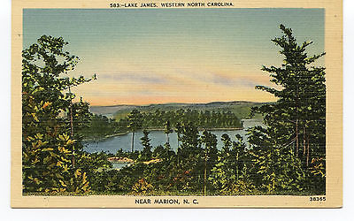 Marion, NC .... Lake James .... Linen Postcard