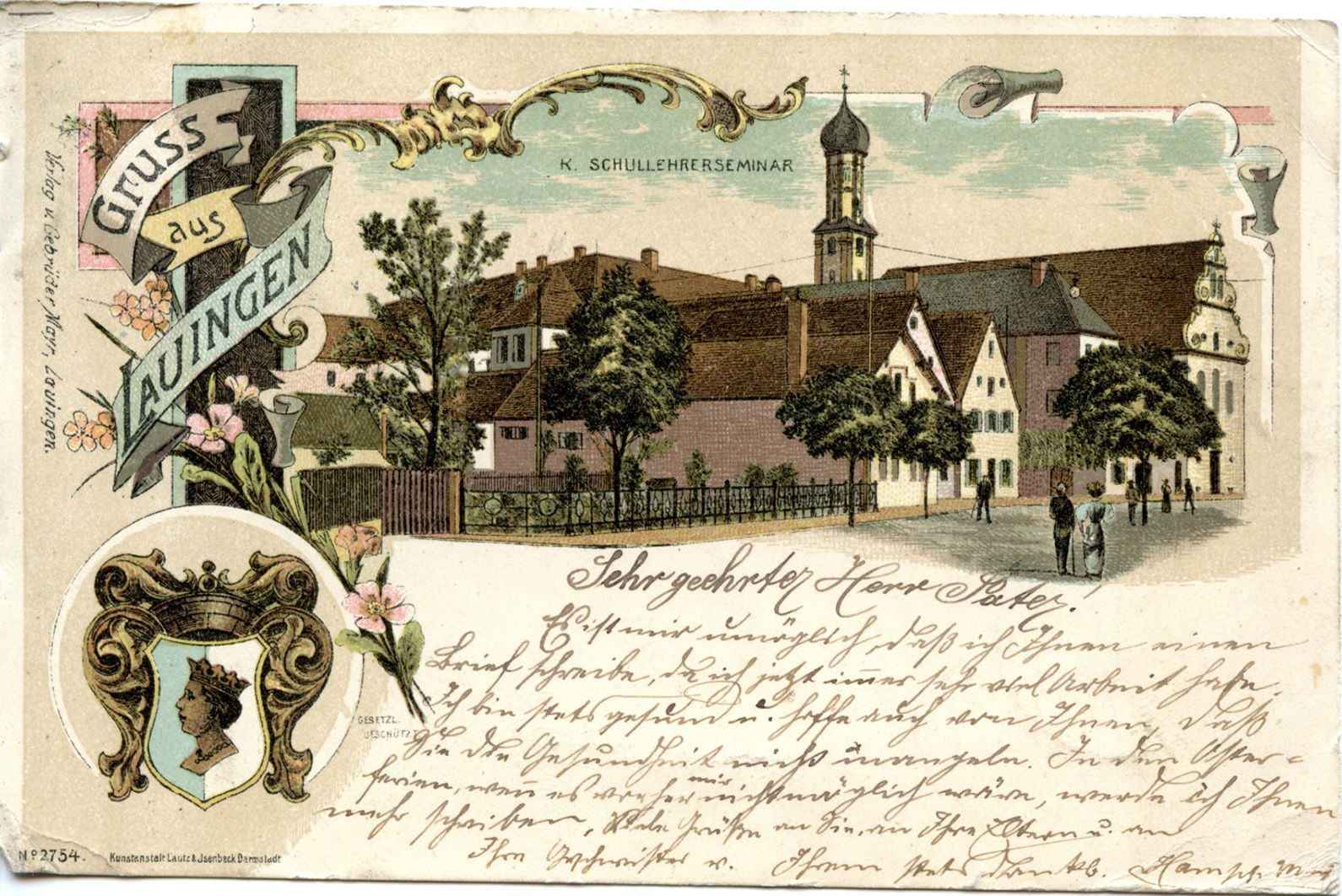 VINTAGE c1905 POSTCARD~GRUSS AUS LAUINGEN~SCHULLEHRER-SEMINAR~FREE S/H!