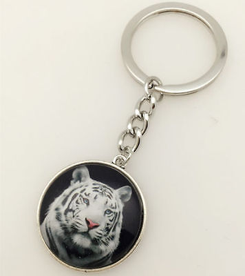 Vintage Tiger Cabochon Tibetan silver Glass Chain Pendant Metal Key Ring