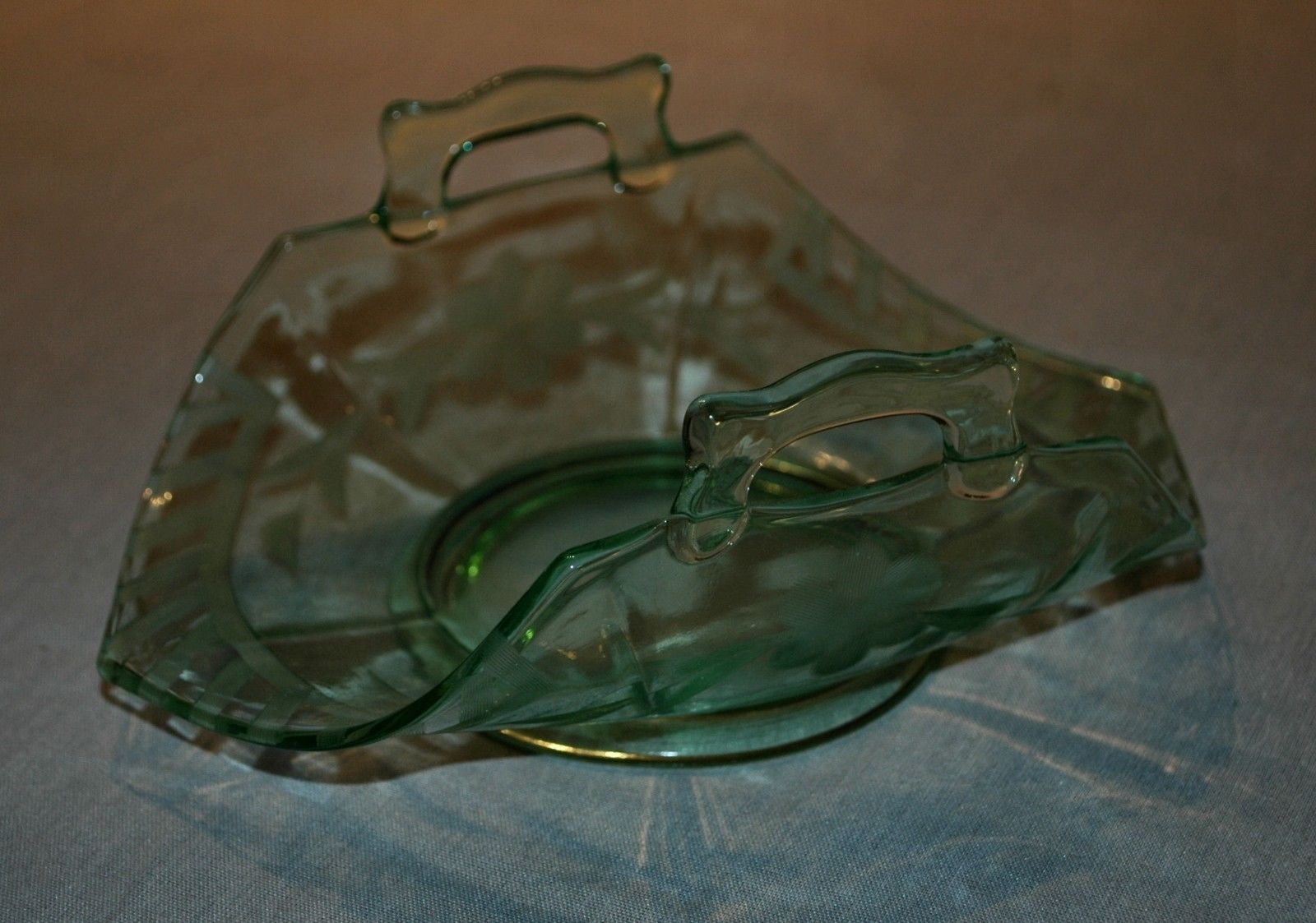 Title (ebay affiliate link): SALE - VINTAGE GREEN DEPRESSION GLASS MINIATURE BANANA BOWL