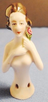 Title (ebay affiliate link): A Vintage Half Doll Porcelain Pin Cushion Flapper Style Germany marked on back