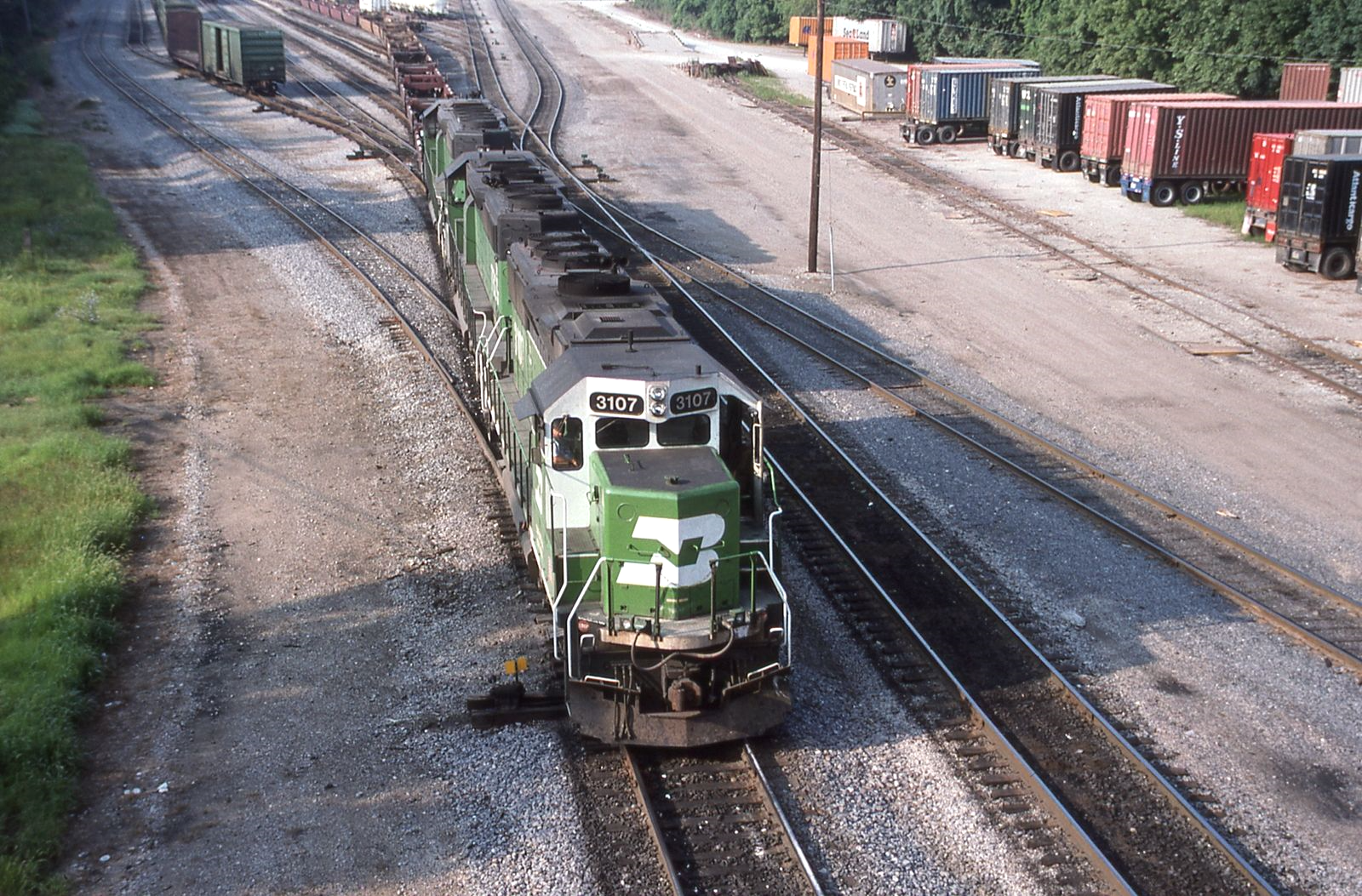 BN GP50 # 3107 action @ Paducah, KY 6/15/1995